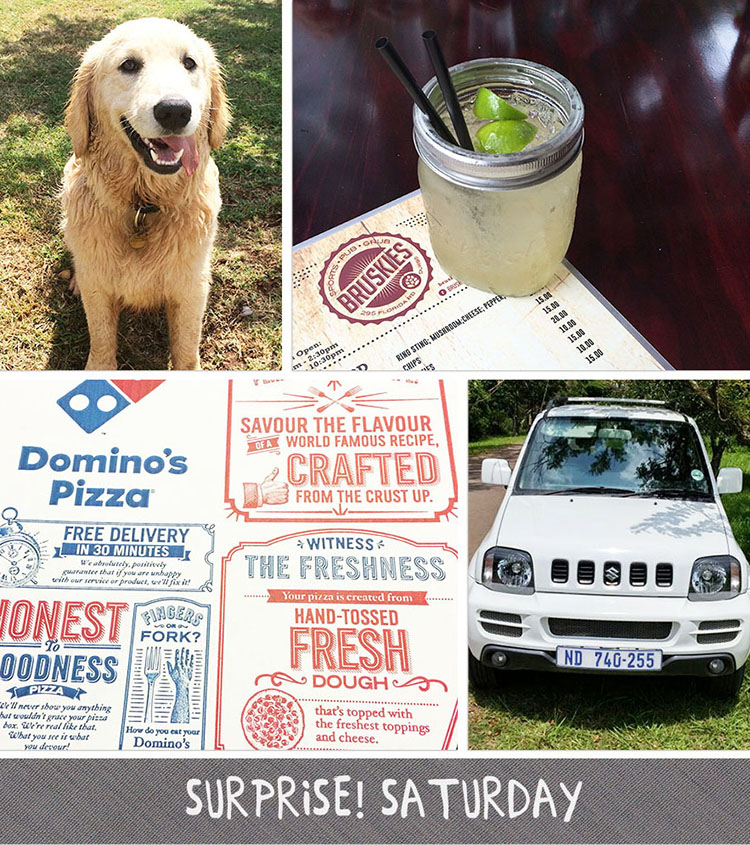 Saturday was slightly more action packed! Darren shot off early bells to go and help our friend Brynn fetch his new Jimny. While Darren was out, I tried to sneak outside and drink my cup of tea in the sunshine but Hunter wasn’t having any of that. We ended up tussling and covered in water from the hose and then Hunter drank my luke warm tea right out of the cup. Who can say no to that face though? Brynn pulled a sneaker on the crowd and didn’t tell Lisa that he was getting his new Jimny at all…so we were in to make it a big surprise! Brynn and Darren swung by and picked me up and we shot off to Westville to surprise Lisa. Safe to say she was VERY surprised! Brynn seems to make a habit of not telling her about new cars.