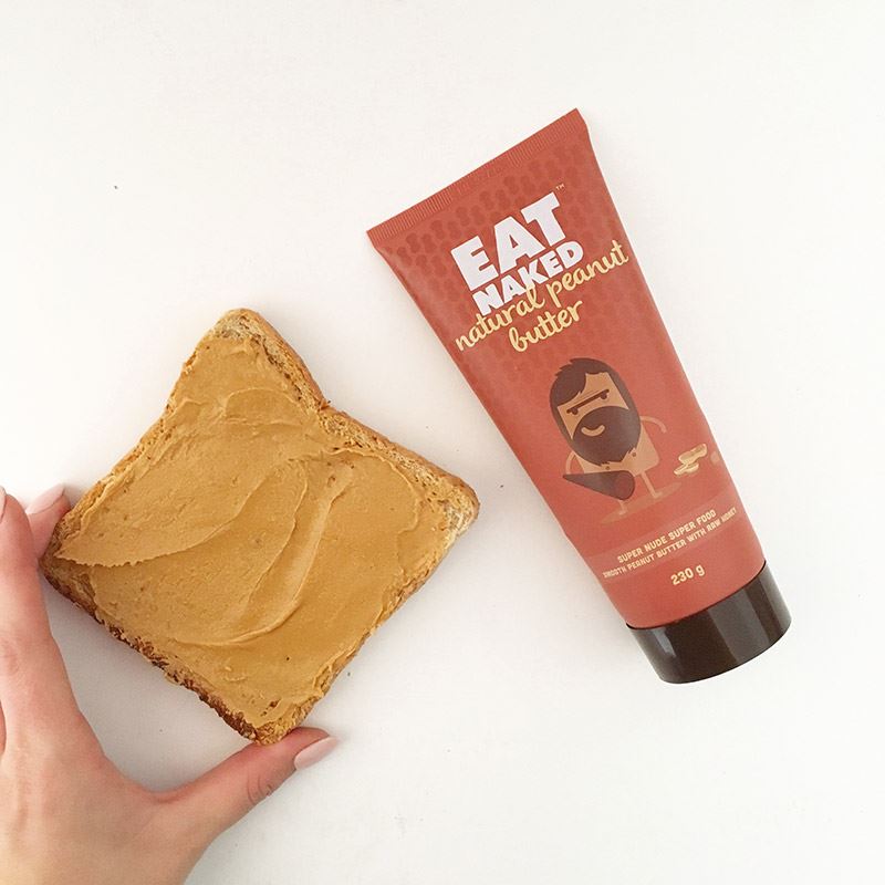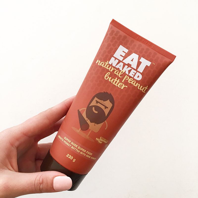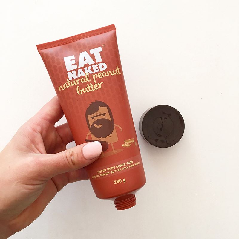 Where did I find it? Darren and I were doing our favourite thing this weekend...shopping around at Dis-chem, when we stumbled across the Eat Naked shelf. If you know Darren and I you will know that we are suckers for cute packaging, good fonts and fancy lookin' stuff. We are both in the design/trend realm so I guess we have programmed ourselves this way. I squeaked, grabbed this tube of peanut butter and I started scouring the back for details. Not only was I surprised to find that there were only three ingredients - Peanuts, honey & sea salt, but Eat Naked is a local product, YAY! It was basically already sold. I mean let's be honest, it meets my peanut butter rules right? I was at a store and I was just "picking it up".